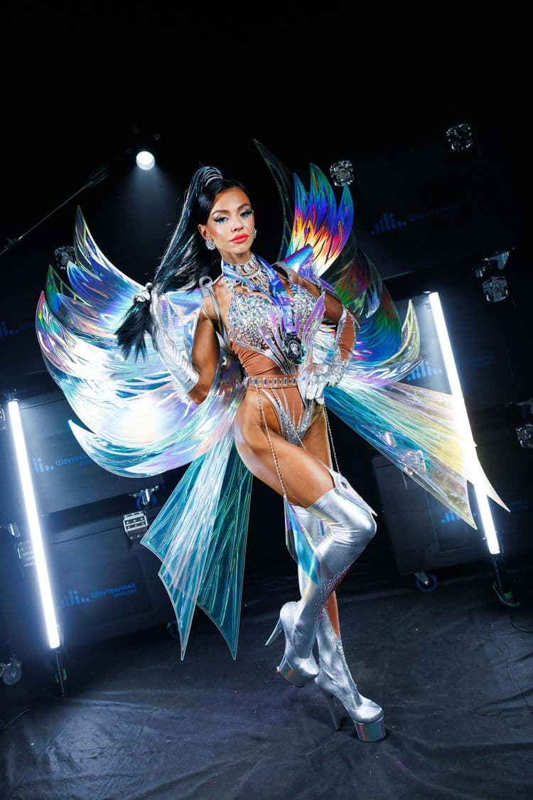 ◾️ Голографические крылья – создают эффект движения света и переливов, подчеркивают динамику сценического выхода.