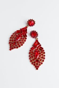 - Серьги с красными камнями и геометрическим узором - 8 см